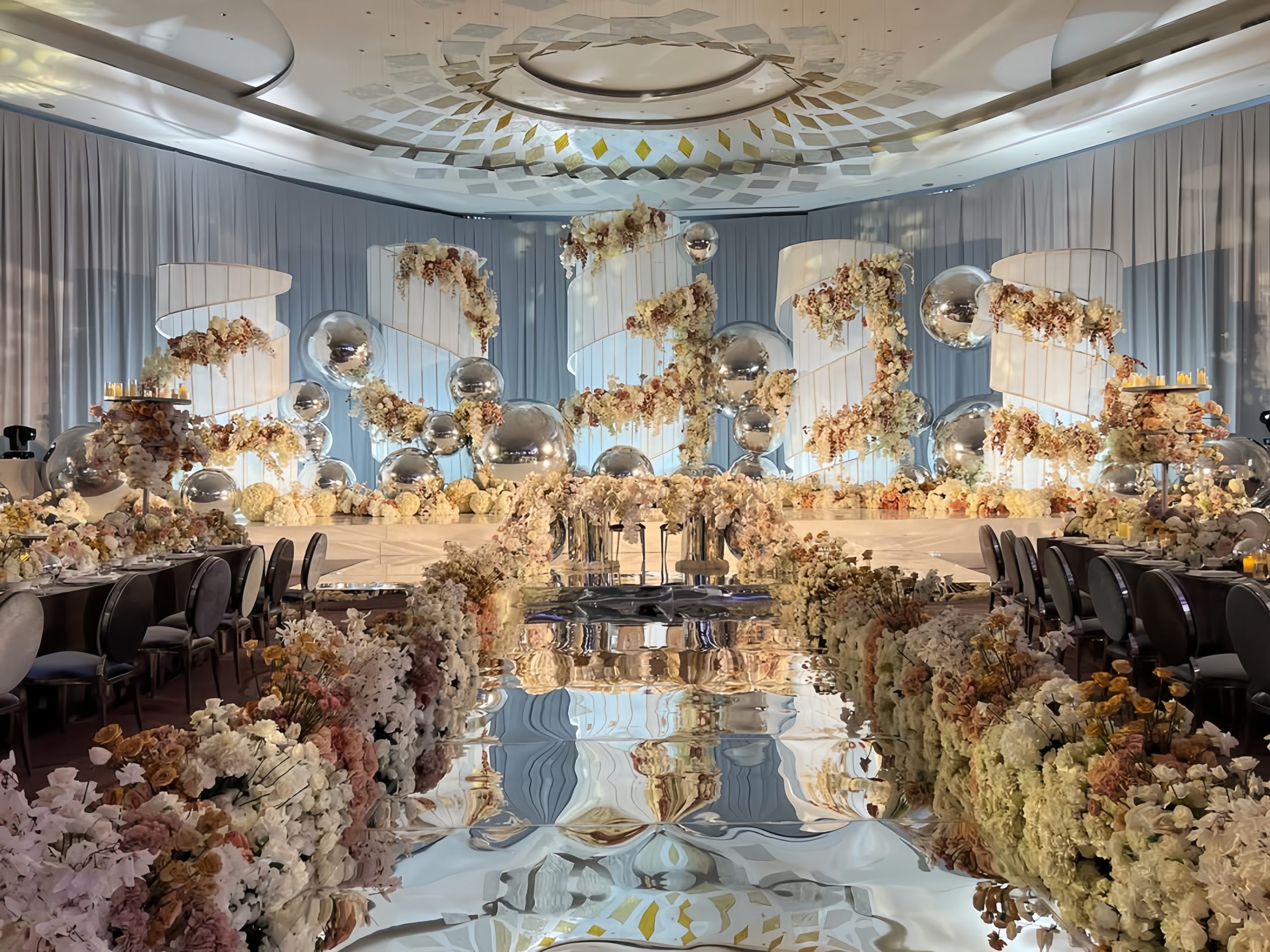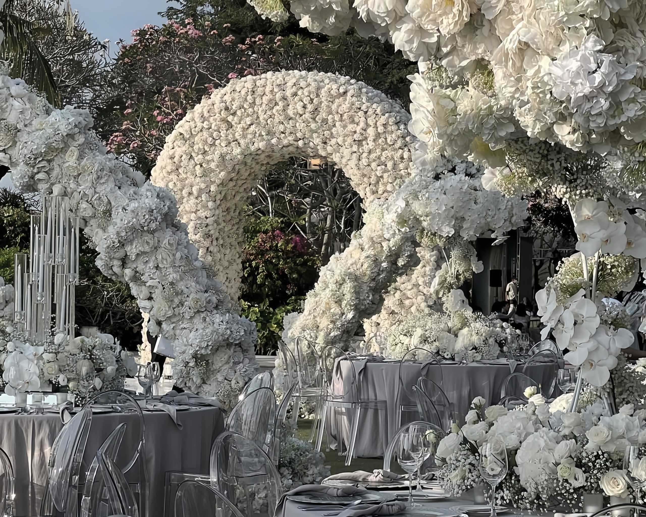 Designmill.co kerap menghadirkan dekorasi bertema kontemporer, penuh karakter, dan detail yang rapi. Vendor ini terkenal karena desain mereka yang sering menggabungkan elemen arsitektural dengan floral installation yang unik, menciptakan tampilan dekorasi yang modern sekaligus timeless.