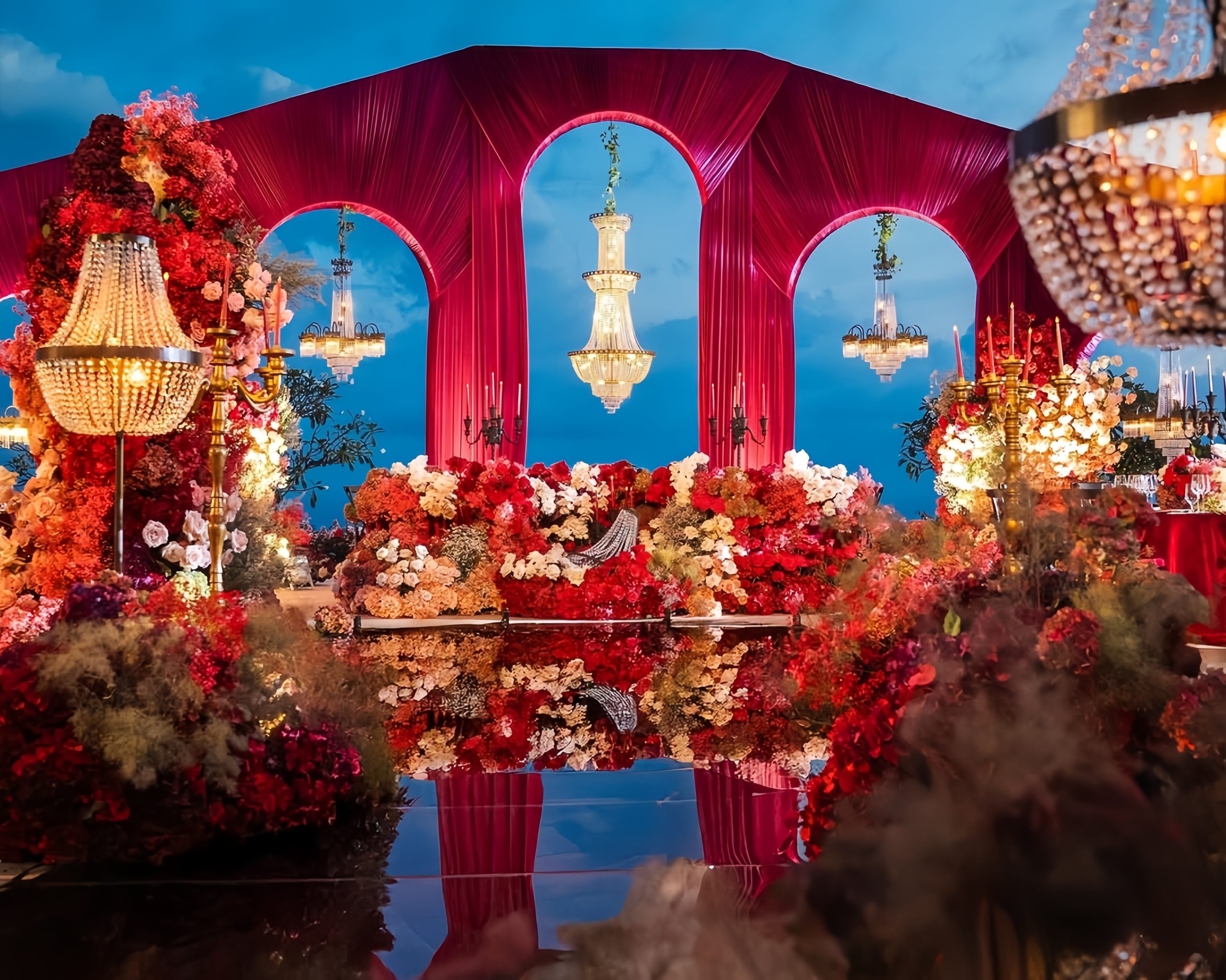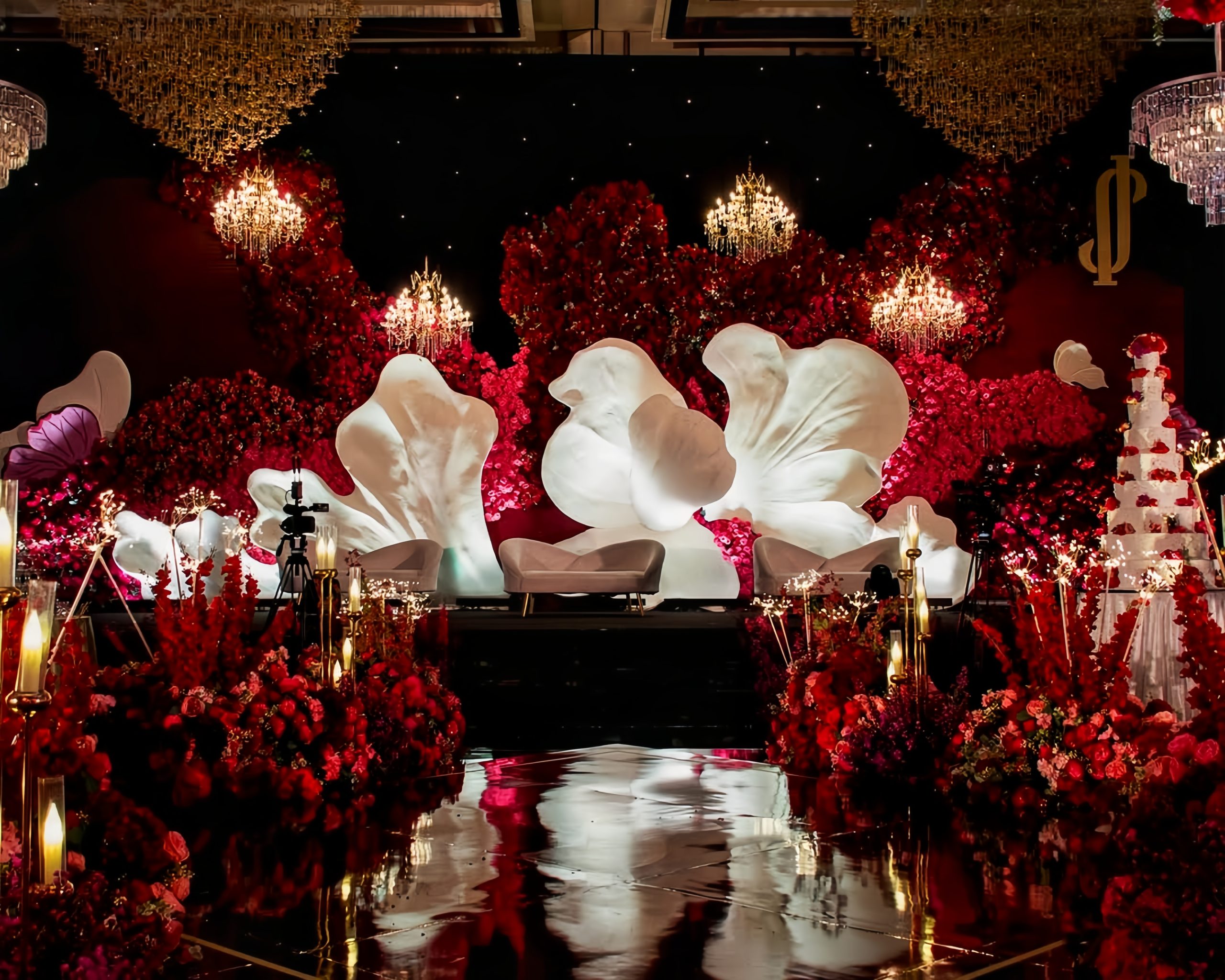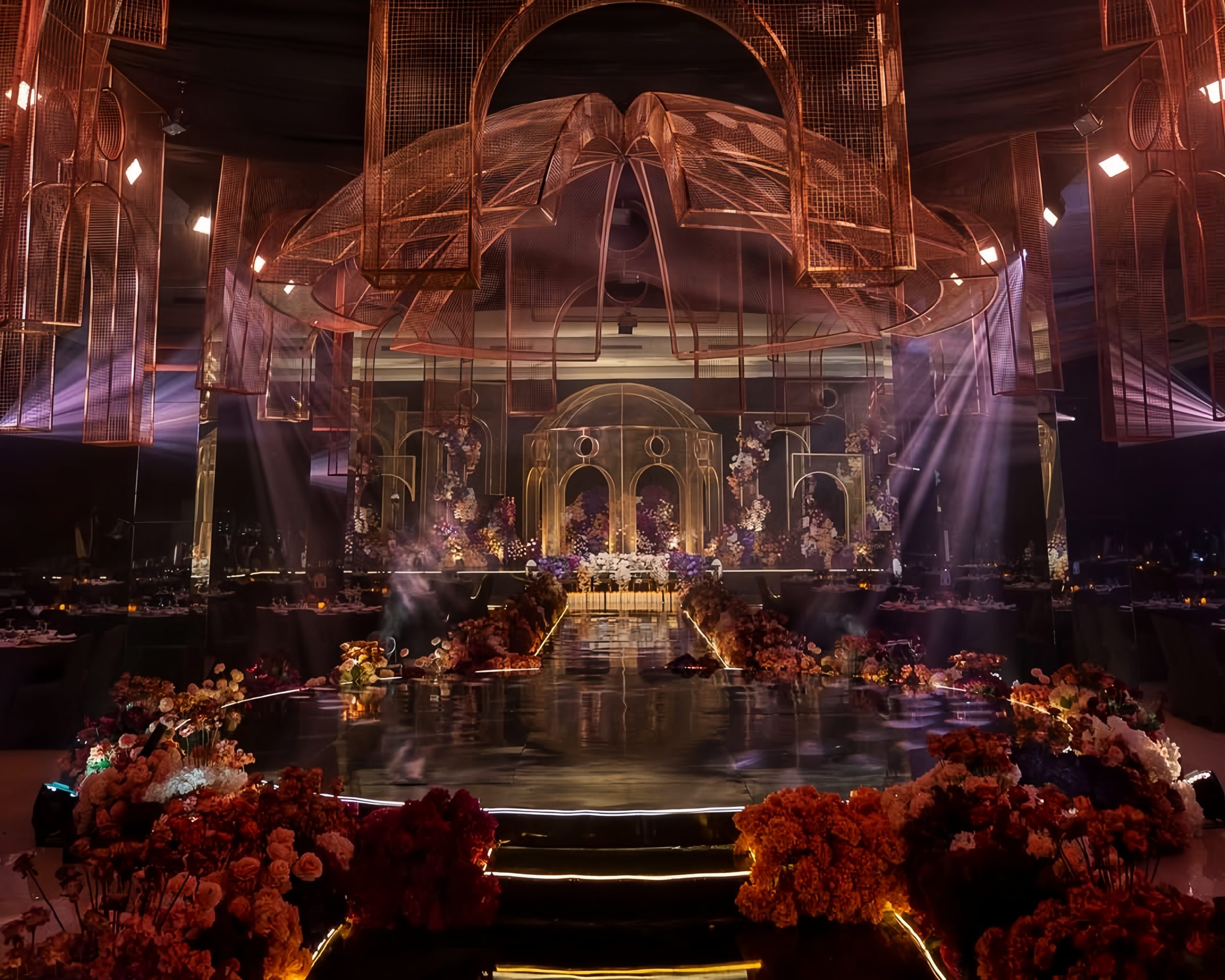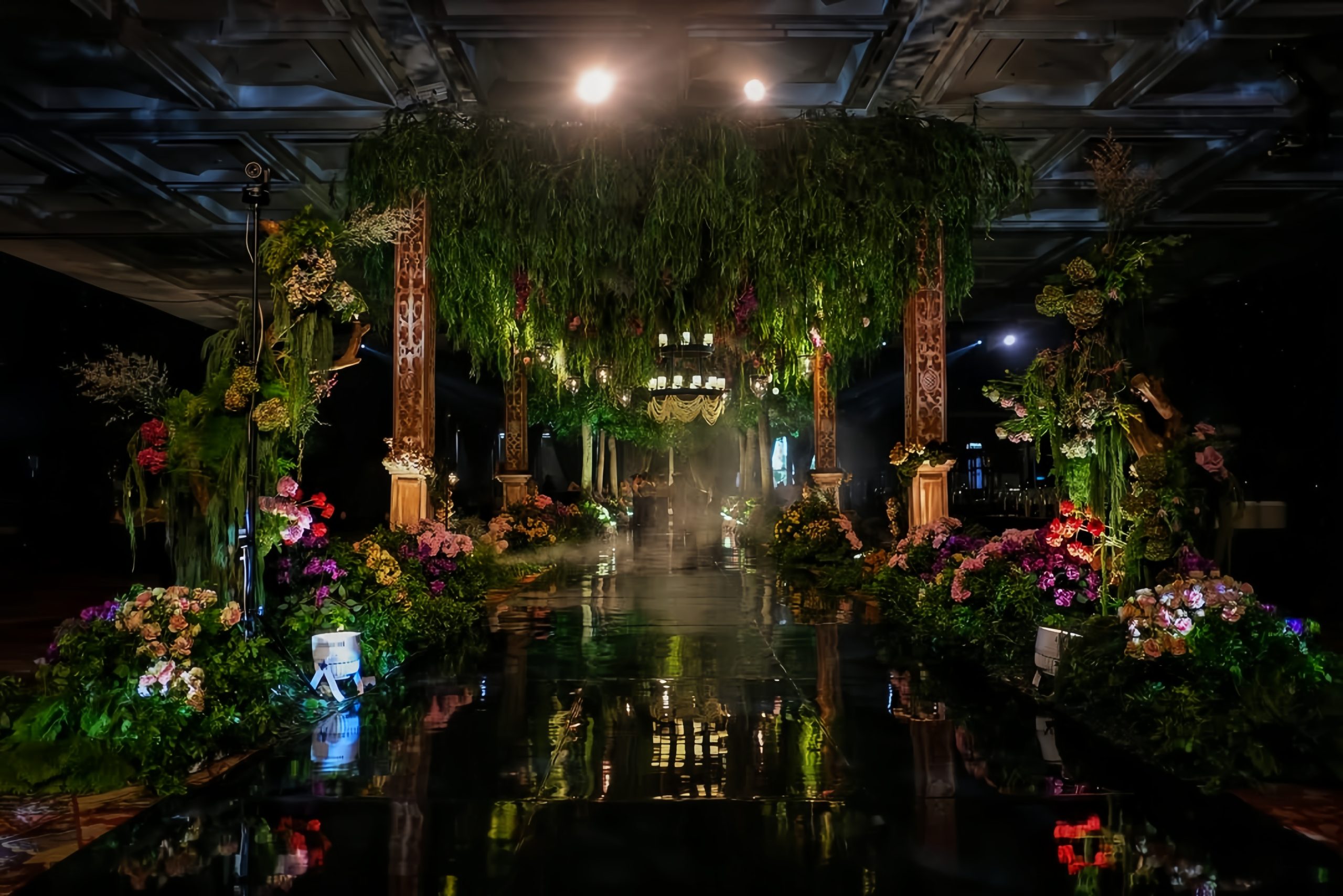 Lotus Design sudah lama dikenal di industri pernikahan Indonesia berkat dekorasi bernuansa elegan dan mewah. Mereka sering menggunakan bunga-bunga premium, permainan tekstur, dan lighting yang dramatis untuk menghadirkan kesan glamor dalam sebuah pesta pernikahan.