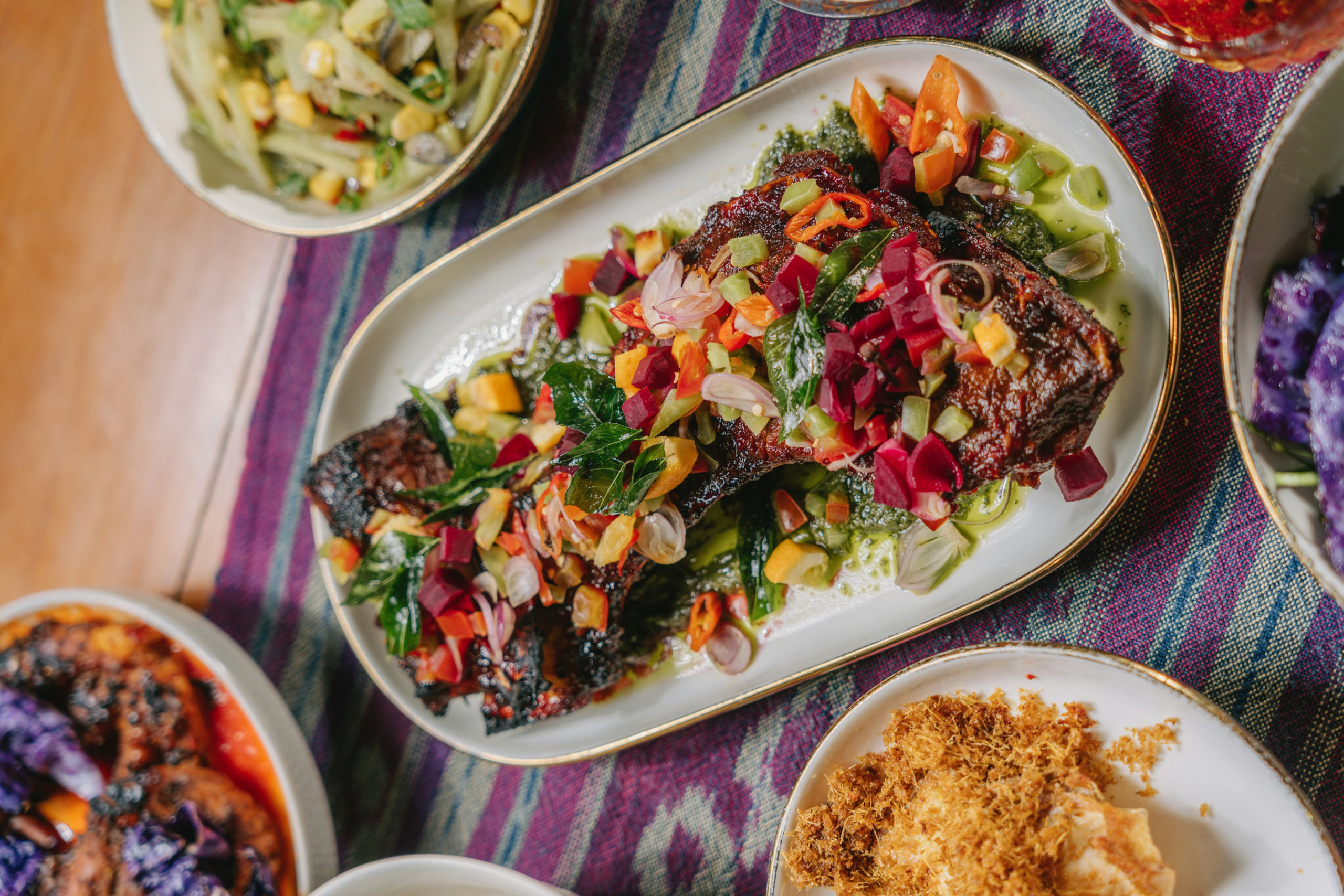 Dailah Sajian Nusantara menghadirkan hidangan Nusantara autentik dengan sentuhan kontemporer yang elegan. Berlokasi di Dharmawangsa, restoran ini terinspirasi dari kehangatan masakan rumahan yang penuh cerita dan tradisi. Coba Bebek Sambal Hitam ala Madura sebagai menu utama yang bold dan berempah serta tutup makanmu dengan manisnya Es Pisang Ijo Dailah sebagai dessert yang segar dan nostalgia. Pilihan tepat untuk pengalaman kuliner Indonesia yang refined bersama keluarga maupun kolega.