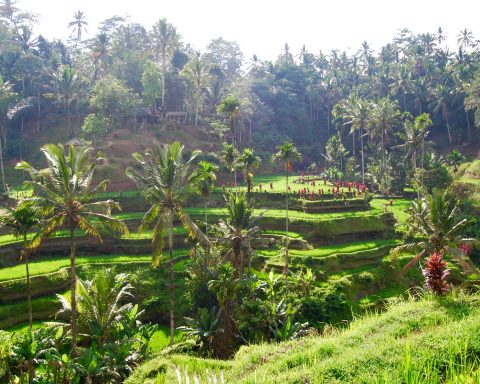 Gemerisik lembut rimbunnya batang padi yang menghijau, selaras dengan bisikan lembut angin, menghadirkan alam ketenangan saat kamu melangkah memasuki dunia Terasering Sawah Tegallalang yang memesona. Terletak hanya sepelemparan batu di sebelah utara Ubud, Bali, terasering-terasering yang ditata dengan cermat ini tidak hanya