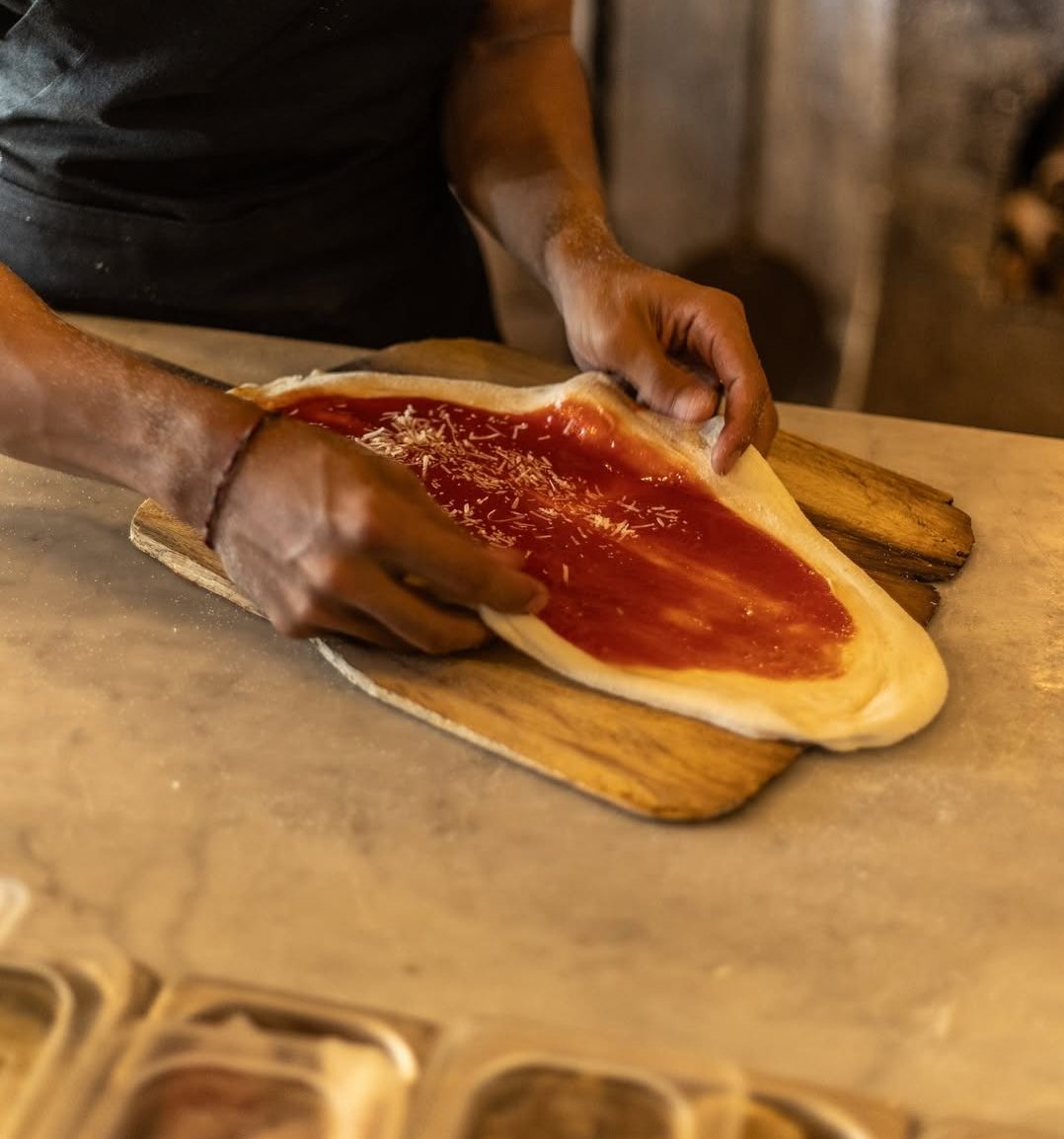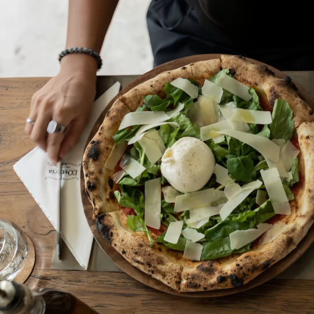 • Sourdough Neapolitan Pizza – Adonan yang difermentasi secara alami, dipanggang dengan oven batu lava, menghasilkan pinggiran renyah dengan tekstur lembut di tengah.