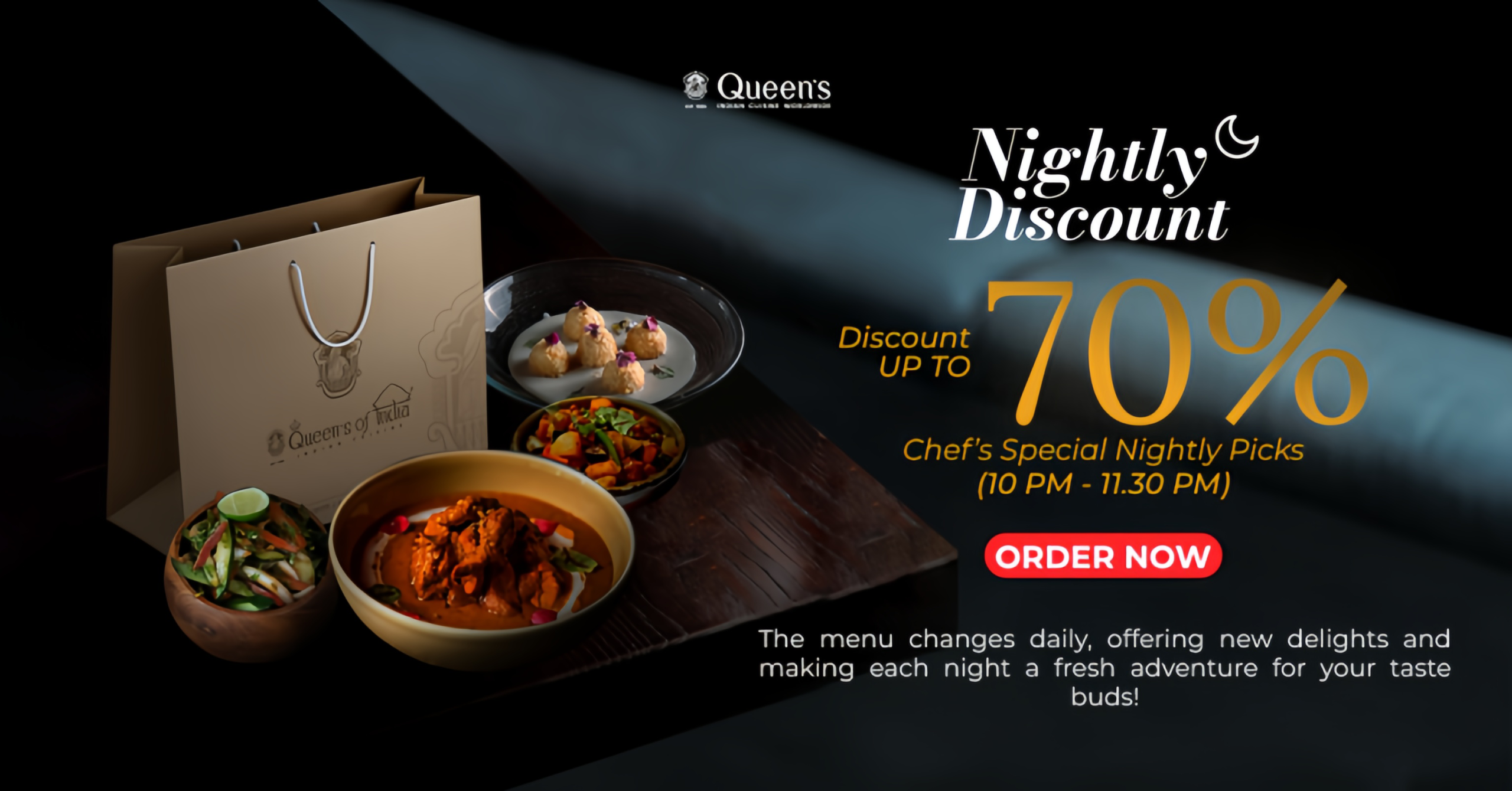 Untuk kamu yang lapar di tengah malam, Queen’s menawarkan promo khusus takeaway dari pukul 22.00–23.30 dengan diskon hingga 70%. Solusi lezat untuk midnight cravings tanpa repot!