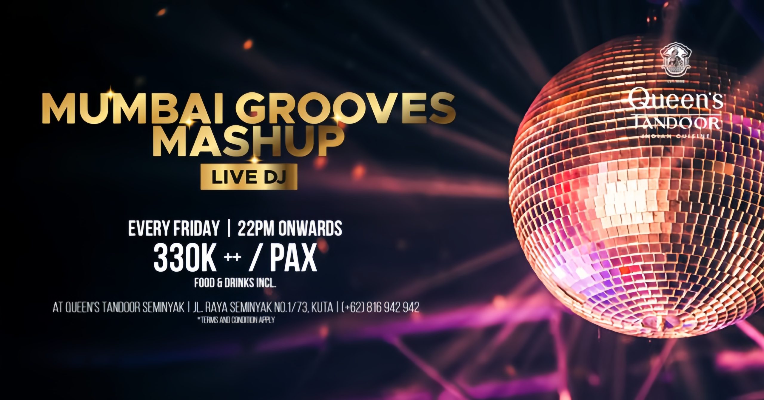 Nikmati atmosfer urban India dengan sentuhan tropis Bali. Queen’s Tandoor Seminyak menghadirkan DJ Night setiap Jumat malam, kombinasi Indian small plates dan cocktails yang bikin kamu betah berlama-lama.